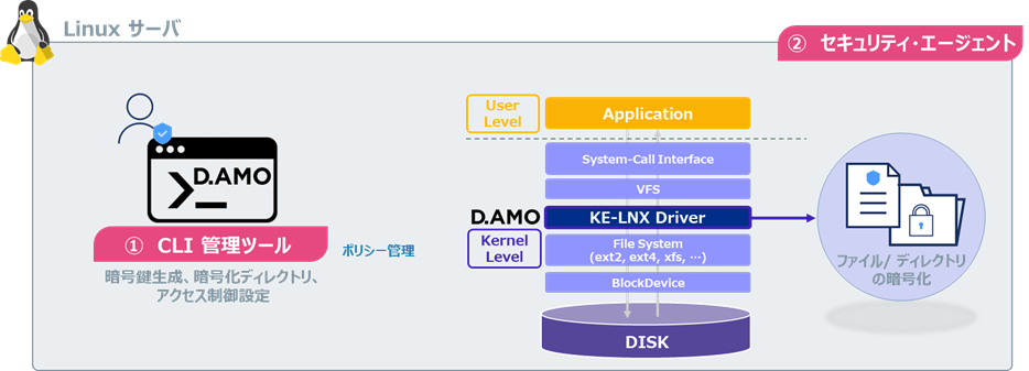 - 第4層: D.AMO KE-LNXによるファイル暗号化とプロセス制御