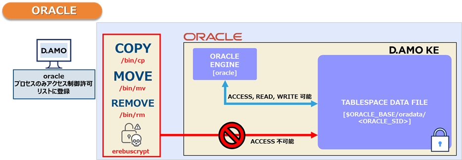 この二重のアクセス制御により、正規のデータベースプロセスが正規のユーザー権限で動作している場合のみ、暗号化されたファイルへのアクセスが許可されます。